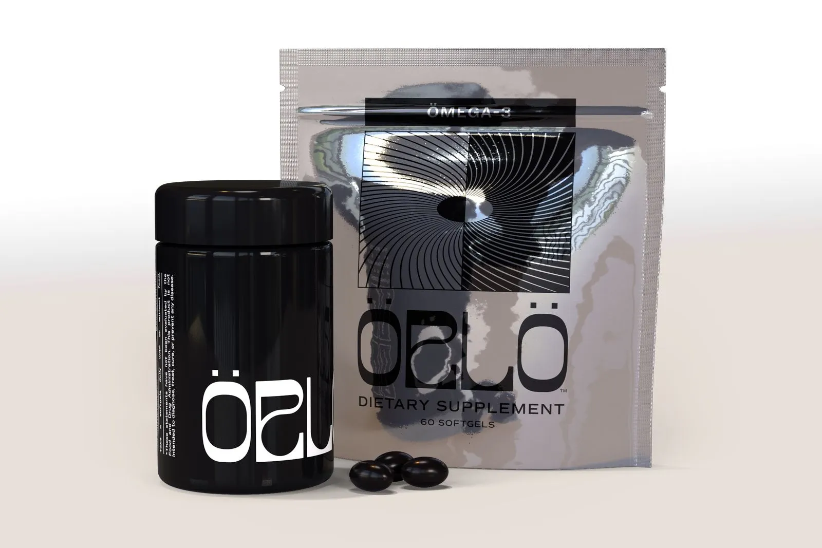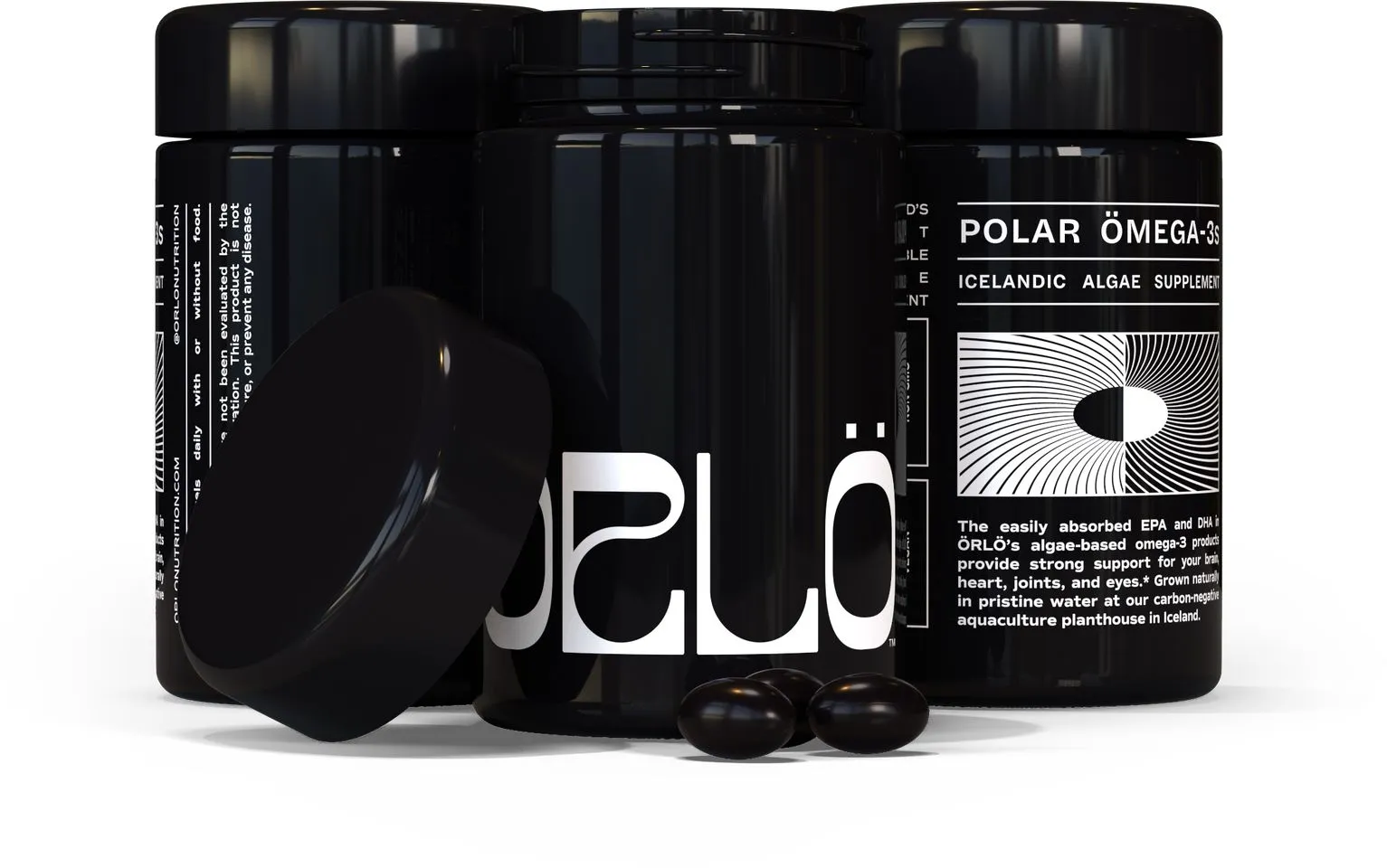 Örlö, a maker of algae-based omega-3 supplements, needed product visuals as striking and unique as their innovative approach to nutrition. Their packaging — a combination of reflective metallic foil pouches and distinctive Miron® violetglass bottles, both direct-printed — presented a fascinating challenge. Capturing the subtle interplay of light on the metallic foil, and the crispness of the white ink on the tinted glass, required great care.